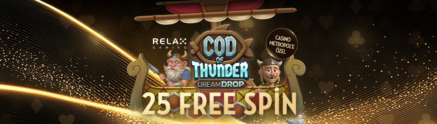 - Cod of Thunder Dream Drop slotunda geçerli 25 Free Spin kazanın.